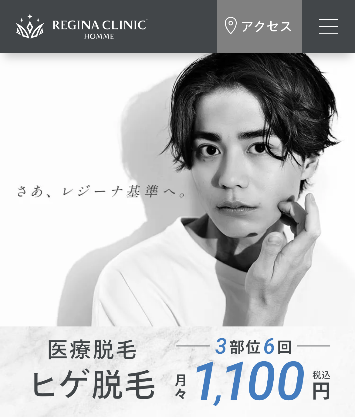 | ヒゲ脱毛の料金 | セレクトヒゲ脱毛(3部位):5回コースで69,800円ヒゲ全体脱毛セット:5回コースで89,800円+追加 顔全体オプション:5回コースで+49,800円 |