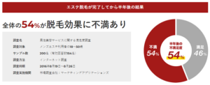 メンズエステ利用者200名にアンケートを取ってみると、全体の54%の男性が脱毛効果に不満を抱えていました。