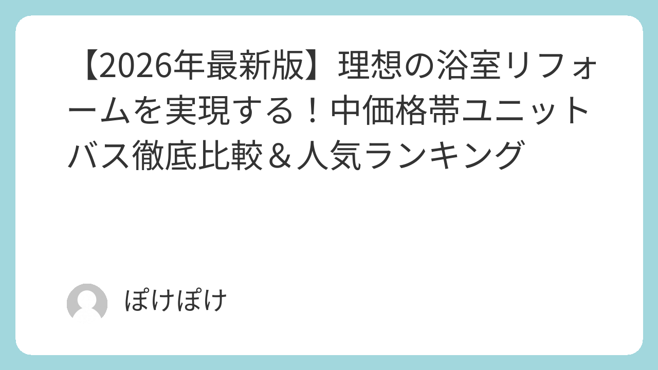 この記事では、リフォームのプロからの評価も高い「中価格帯(ミドルクラス)」のユニットバスを軸に、主要5メーカーの特徴や最新機能を徹底解説します。あなたのライフスタイルに最適な「最高の一室」を見つけるためのガイドとしてご活用ください。